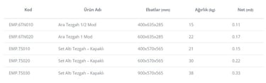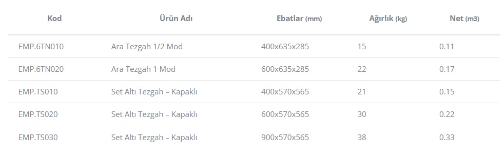 Tezgahlar 60 seri cihazların altına kullanılabilecek uygun modüler ölçülerdedir.