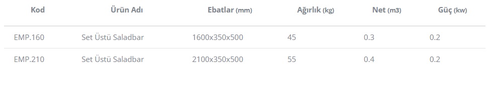 2100 mm’de 1/4-100 9 adet GN.küvet kapasiteli.