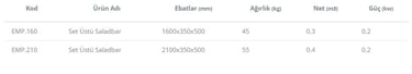 1600 mm’de 1/4-100 7 adet GN.küvet kapasiteli.